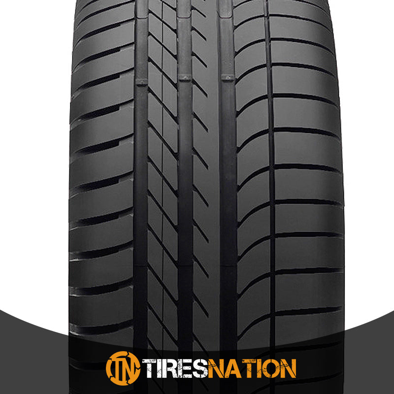 The Goodyear Eagle F1 Asymmetric is a high performance summer tire manufactured for passenger vehicles. The tire was manufactured with a special tread blend. It contains carbon black that boosts the dry weather traction, silica that increases the wet weather performance and polymer that enhances the tread stiffness. The combination of these three allow the tire to perform excellently at high speeds in dry and wet conditions. The summer weather traction is further upgraded with the asymmetric tread design and the hydroplaning resistance of the wide circumferential grooves. While the tire has first-rate summer weather traction, it will not perform well in winter weather as the tread will not maintain its flexibility. The special polymer-enhanced tire compound ensures the tread's optimal stiffness, which is needed to increase the model's controllability. The steering responsiveness and driving stability are enhanced in this manner. The steering becomes swift and precise in its response to the driver's instructions and tire's shape is stabilized against the driving pressure affecting it. The tread block design of the outer shoulder and the active CornerGrip technology boost the cornering ability and power. The tread blocks promote additional biting edges, while the CornerGrip technology maintains even tread pressure to ensure a safer maneuvering ability. The Eagle F1 Asymmetric guarantees a safer high speed performance. The internal structure features twin steel belts reinforced with a three-layer spiral wrapped polyamide cord that enhances the tread stability and the high speed durability. The tire does not deform under the driving pressure which allows it to perform to its highest capability. The tire's sidewall was manufactured in a way that it protects the rims from accidently curb manages, further upgrading the high speed driving safety.