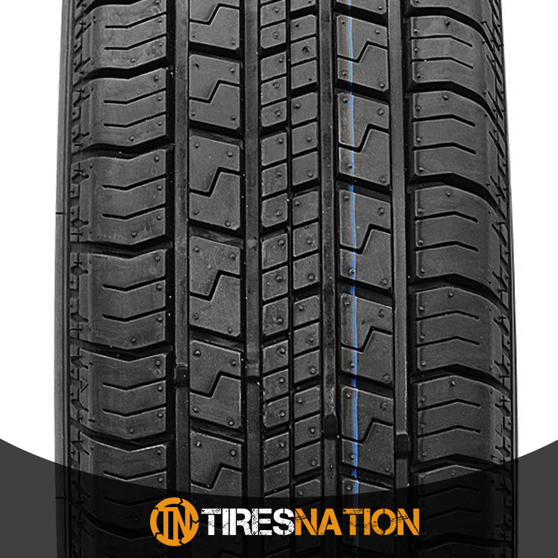 "The Suretrac Power Touring is a touring all season tire manufactured for passenger vehicles. The tire promotes great all weather traction. The tread design and the all season tire compound work together to improve the dry, wet and winter weather road gripping ability. The symmetric tread design's elements upgrade road grip throughout the year, while the all season compound maintains its flexible traction even in colder temperatures. The tread features circumferential grooves and an open inner shoulder design that channel water and slush away from the tire's footprint. In this manner, the tire resists hydroplaning and offers a safer driving experience. The tread design's optimal footprint and pattern ensure a comfortable and quiet drive. The flat footprint's close road contact manages to absorb the shock of the drive, which reduces the road vibrations felt in the vehicle's cabin. The tread design's closed outer shoulder pattern lowers the road and tread pattern noise heard while the tires are in motion. They prevent the airwaves from entering the tire's footprint and coming into contact with the tread elements. As a result, the model provides an enjoyable performance. The Power Touring improves its controllability with the footprint's constant road contact. The tread design's constant road contact boosts the steering responsiveness and driving stability. The steering becomes faster and more precise in its response to the driver's commands, while the structure is stabilized against the driving pressure affecting it. The increased control enables the driver to confidently maneuver the vehicle in all weather."