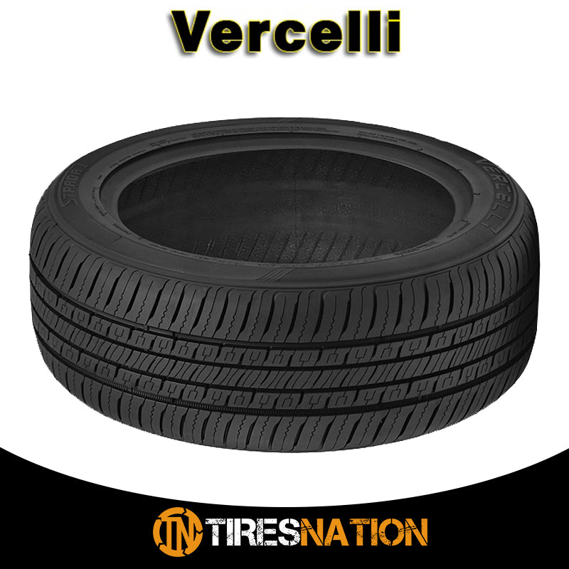 "The Vercelli Strada I is a touring all season tire manufactured for passenger vehicles. The tire promotes excellent all weather traction. The asymmetric tread design and the all season tire compound ensure great road gripping ability. The asymmetric tread design's firmly grips the road surface in dry, wet and winter weather. The wide circumferential grooves actively disperse water and slush from the tire's footprint to effectively resist hydroplaning. The enhanced hydroplaning prevention and first-rate all weather traction ensure a safer year round driving experience. The tread pattern features three continuous ribs and wide shoulder tread blocks. The continuous center ribs stabilize the tire against the driving pressures affecting it. They also enhance the model's steering responsiveness and accuracy. The upgraded steering responsiveness and driving stability enable the driver to confidently control the tire in all conditions. The shoulder tread block sequence increases the number of biting edges that grip the road surface. They improve the cornering and maneuvering ability by doing so and ensure a more secure all weather drive. The Strada I offers a comfortable driving experience. The tread pattern maintains constant road contact which allows the tire to closely follow the road surface. This decreases the road vibrations felt while the tires are in motion and guarantees a more enjoyable drive."